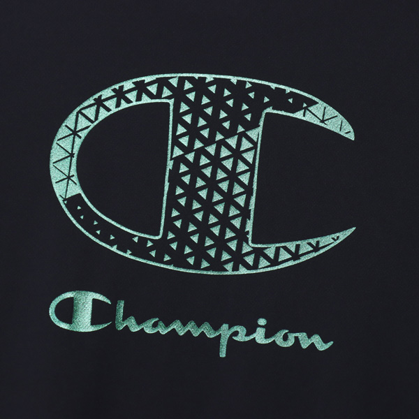 胸にはChampion(チャンピオン)ロゴと、背中には幾何学模様のCロゴとChampionロゴを組み合わせたグラフィックをプリント。