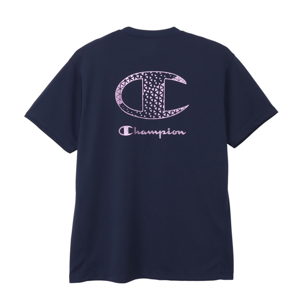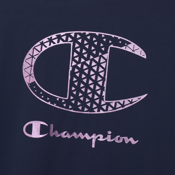 胸にはChampion(チャンピオン)ロゴと、背中には幾何学模様のCロゴとChampionロゴを組み合わせたグラフィックをプリント。