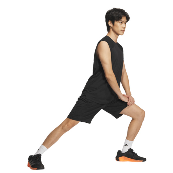 新開発の肌離れのいいクールタッチ素材を採用し、屋内外のトレーニングシーンに対応するテックエッセンシャルズレンジのスリーブレスTシャツ。