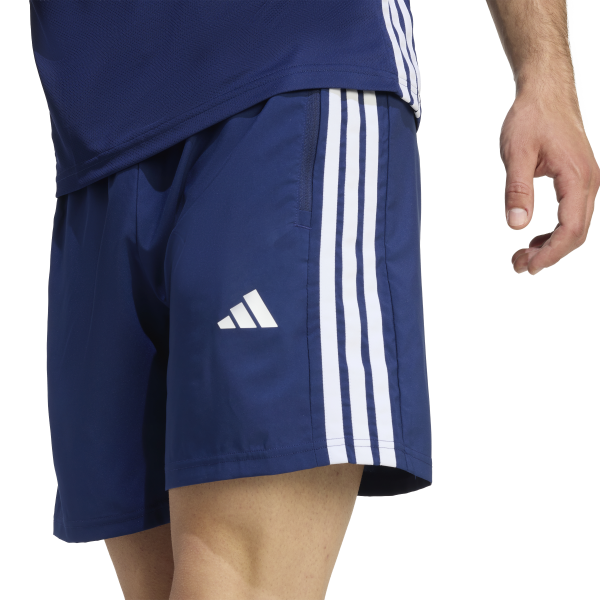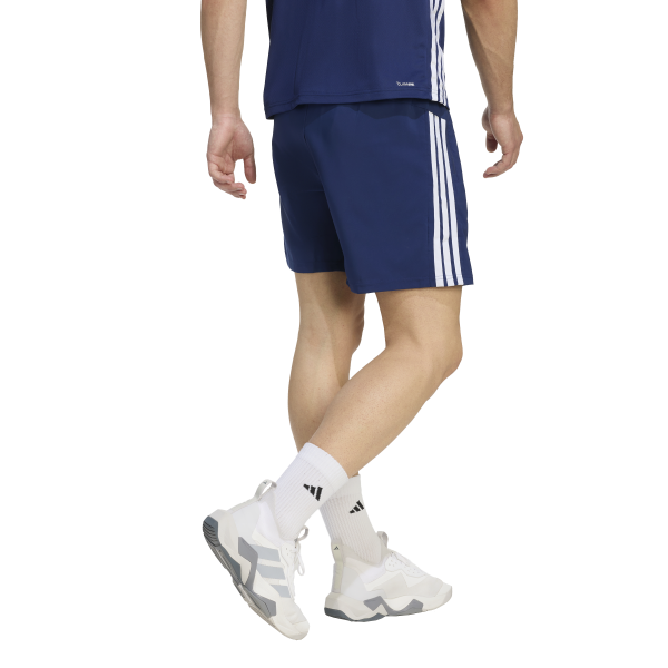 トレーニングには、ワークアウト エッセンシャル ベース スリーストライプス ウーブン ショーツが信頼できる選択肢。