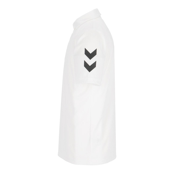 吸汗速乾素材を使用したhummelロゴワンポイントデザインのポロシャツ。