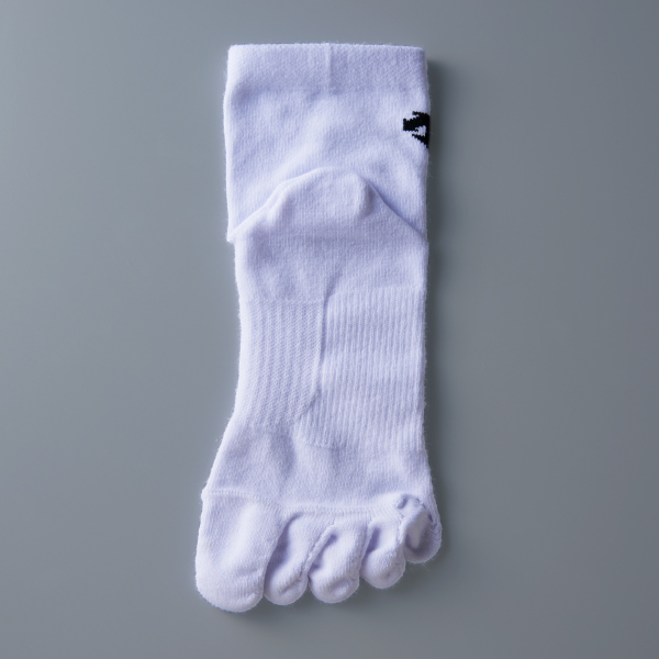 石川選手と共同開発した足の指入れ感にこだわった指先立体構造の5本指ショートソックス。
