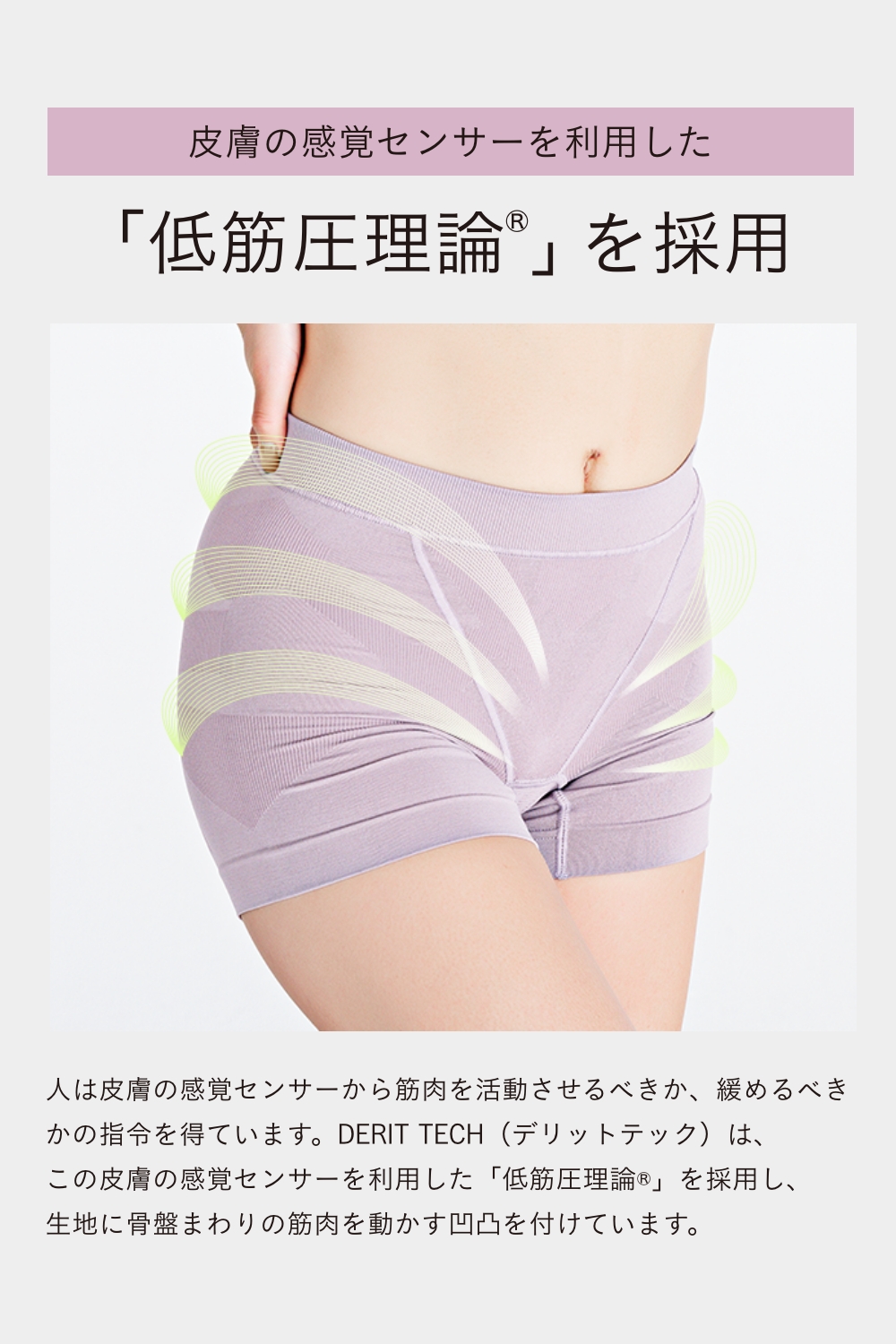 どんな動きにもパンツがフィットし、骨盤まわりの筋肉が正しく使えるよう誘導。あるべき美しい姿勢へと習慣づけます。