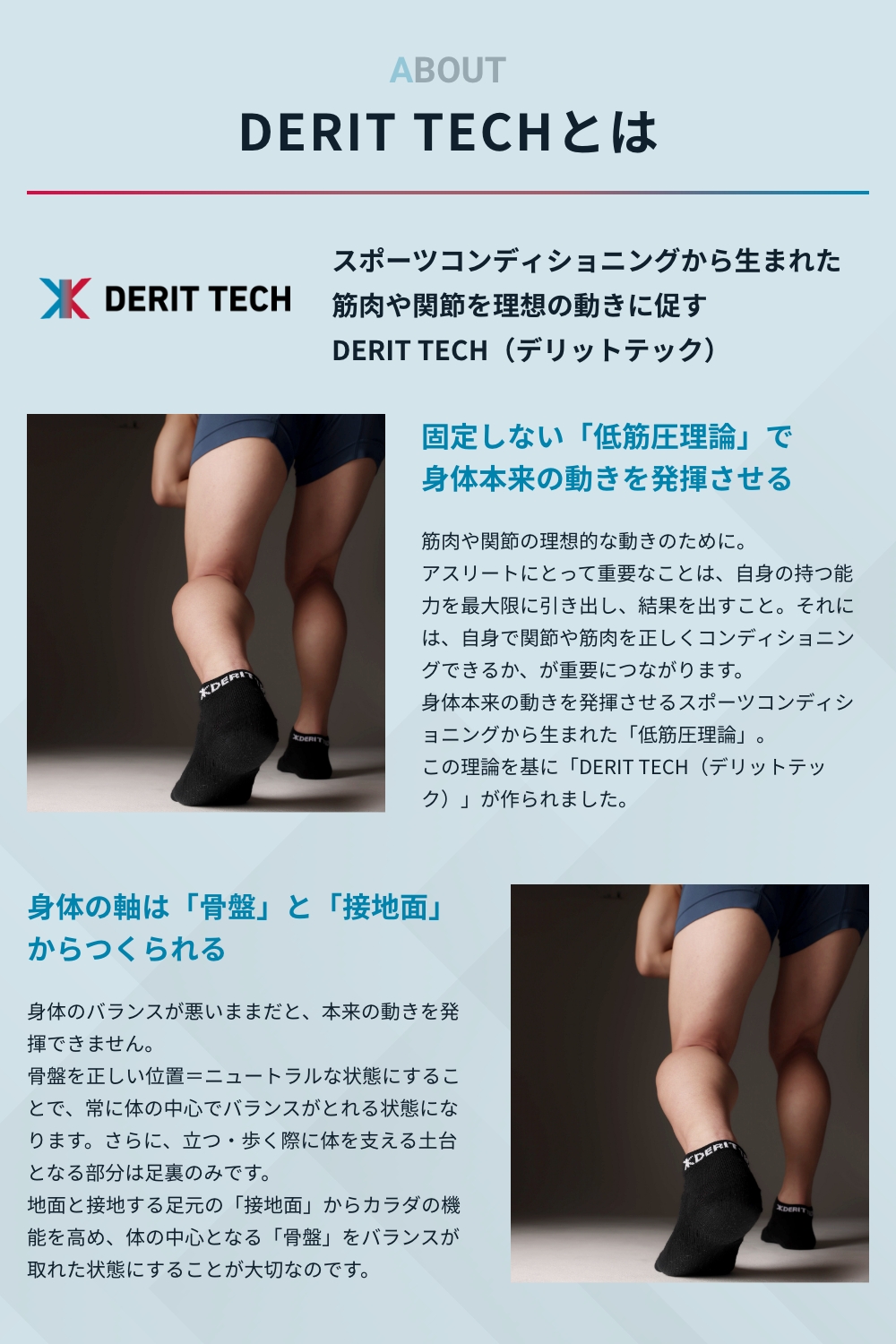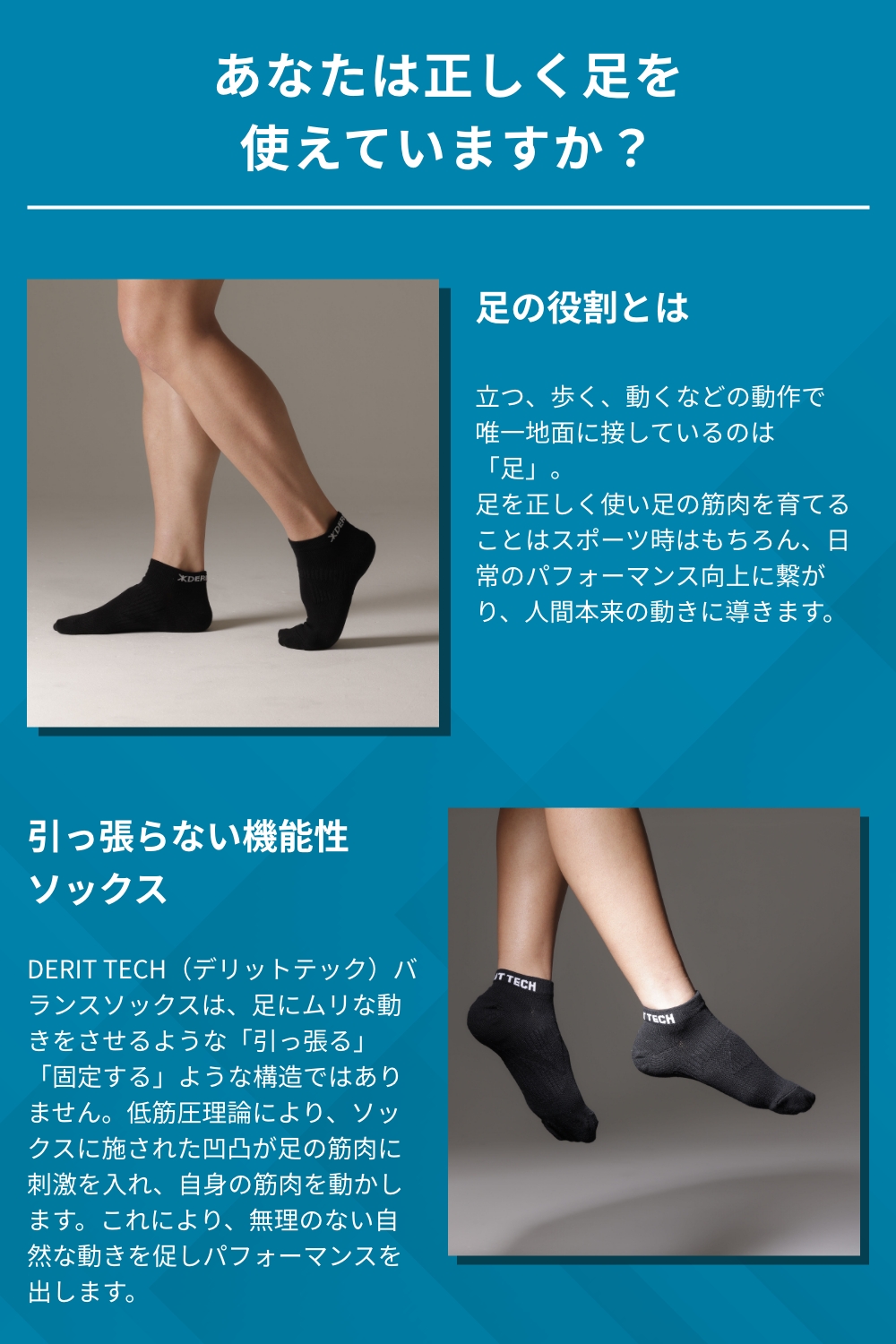 ふくらはぎは第二の心臓といわれています。デリットテック機能性ソックスをはくことでふくらはぎの筋出力が高め、巡りを良くし、足のむくみや疲労感にアプローチします。