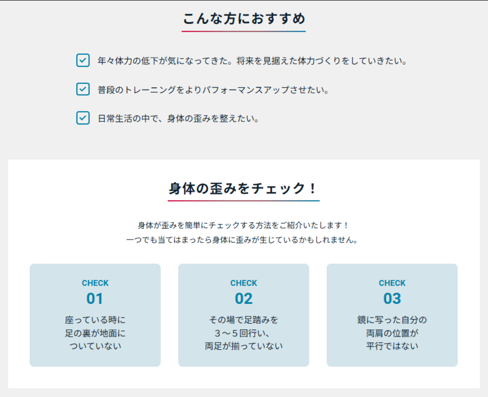 理学療法士の知見とメディカル発想をベースに、もともと身体が備えている機能を引き出します。