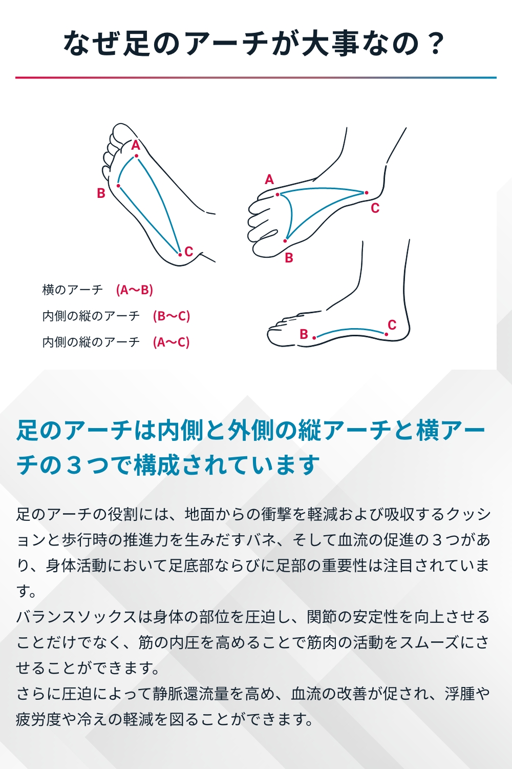 内側縦アーチ、外側縦アーチ、横アーチの3つのアーチが整い、足のクッション機能やバネ機能がより働きます。