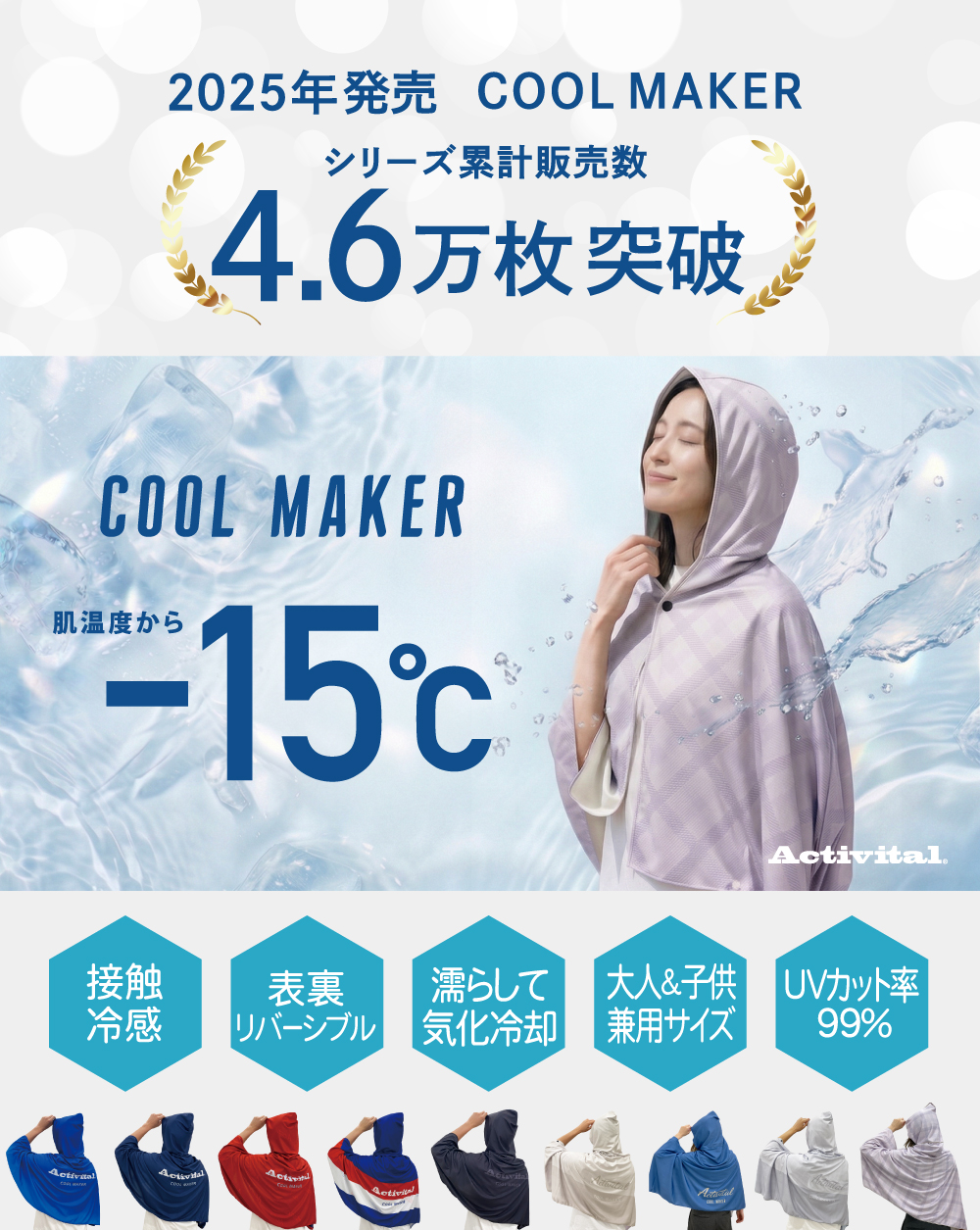 気化冷却涼感!肌温度-15℃の極冷感タオルポンチョ