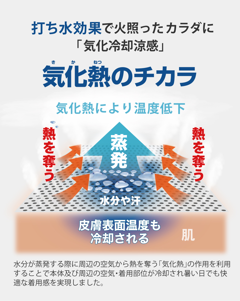 ●気化冷却の力で肌温度から-15℃