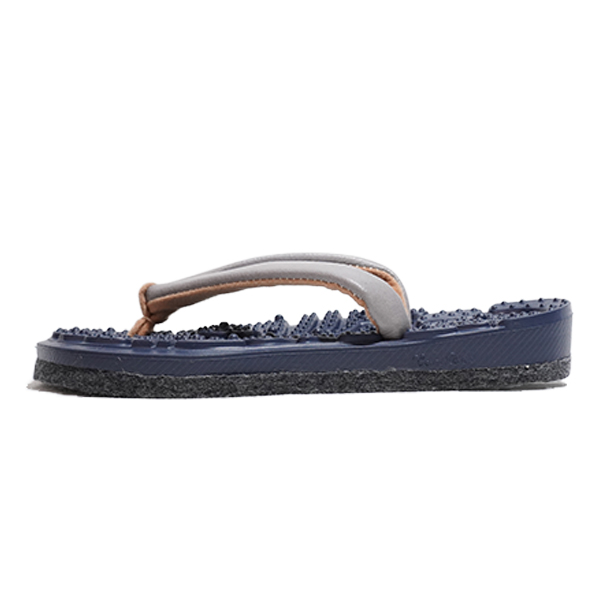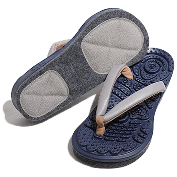 お部屋履きの雪駄はどうでしょうか。足裏の反射区を参考にデザインされた凹凸のある天板は、長時間の立ち仕事で疲労した足に心地よい刺激を与えます。反射区を刺激することで全身のバランスが整えられ、機能回復をはかると供に、リラクゼーション効果を促します。そもそも雪駄は、鼻緒に指を入れることで、足指の股が刺激されて健康に良いと言われています。このダブル効果で、お部屋に帰った疲れた足を癒やしてあげましょう。