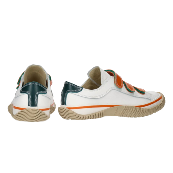 定番ベルクロモデルSP-211が、カンガルーレザー×牛革の上質なコンビでさらに快適な履き心地に進化。シュータンとベルクロテープには、軽くしなやかなカンガルーレザーを採用し、足の甲にやさしく沿うような柔らかなフィット感を実現しています。ベルクロ内側に配した鮮やかなグリーンが、見え隠れするたびにさりげない遊び心を演出。さらに、踵のレザーパーツが後ろ姿に上質なアクセントを添えます。日常の装いに自然と溶け込みながら細部で個性が光る、快適さとデザイン性を両立した大人のためのベルクロスニーカーです。華やかでありながら派手すぎないカラーリングは、大人のスタイリングに自然な個性をプラス。日常の装いを一段引き上げてくれる特別感、アートピースな一足です。