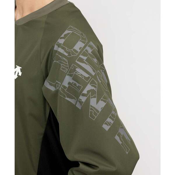 肩口の迷彩プリントがデザインアクセントの秋冬使用のジャケットです。