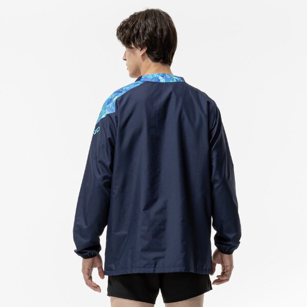 ウォーミングUP時に袖が張り付かない様に、身頃のみ裏地に起毛トリコットを使用しています。(袖部分には裏地無し)