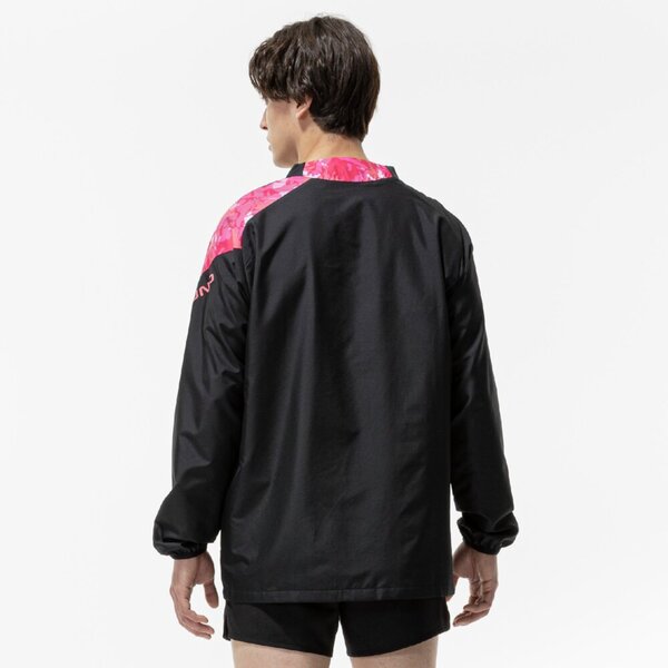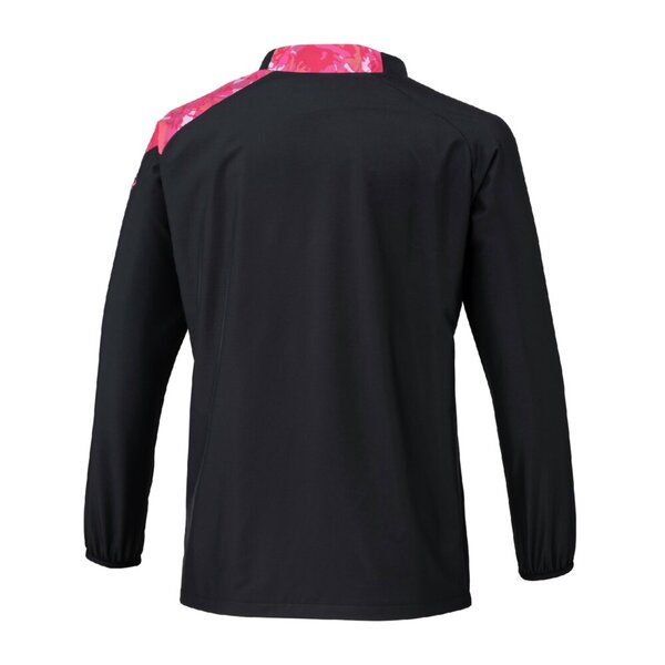 ウォーミングUP時に袖が張り付かない様に、身頃のみ裏地に起毛トリコットを使用しています。(袖部分には裏地無し)