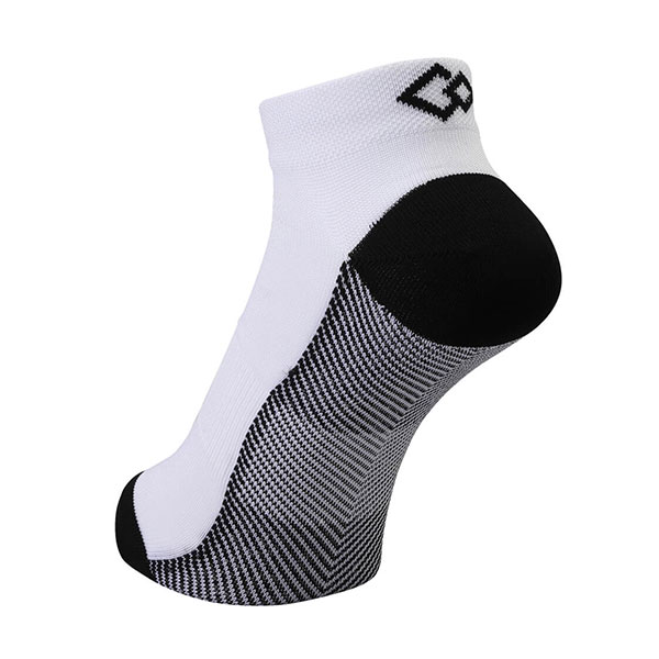 かかと部分に低反発素材、つま先(母指球小指球)部分に高反発素材を使用したスポーツ用ソックスです。
