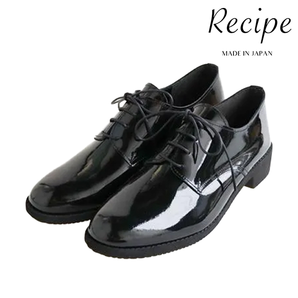 [Recipe][women]RP-565 ENAMEL BLACK 軽量レースアップシューズ