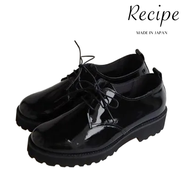 [Recipe][women]RP-567 ENAMEL BLACK 厚底レースアップシューズ