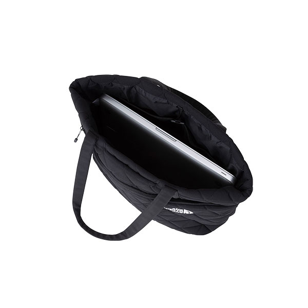 電子機器やその周辺アクセサリーの収納に便利な、クッション性のあるトートバッグです。