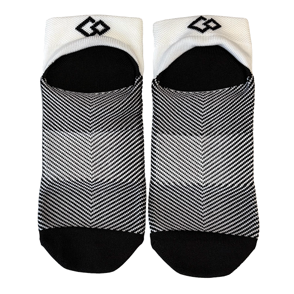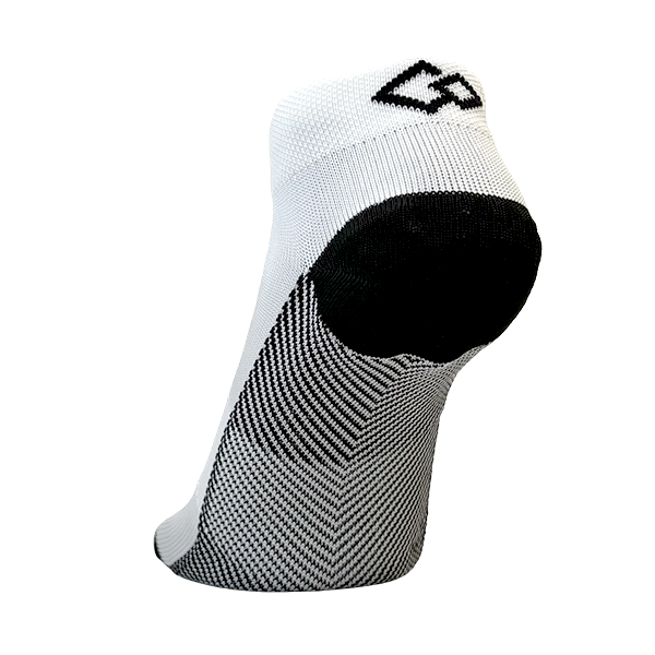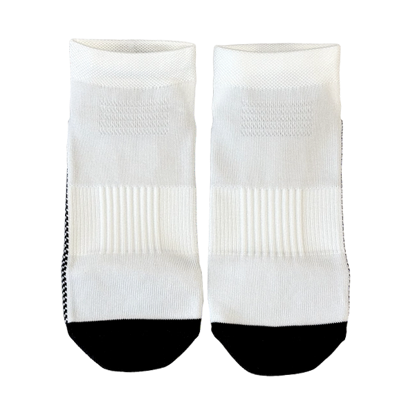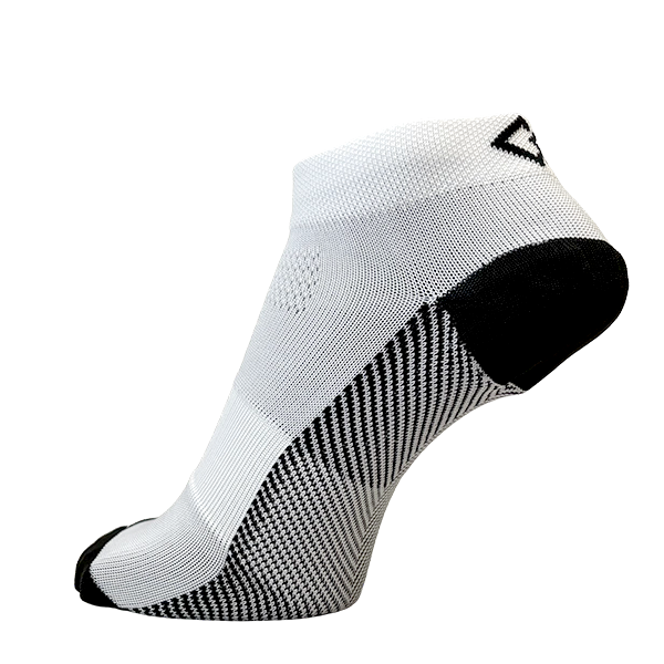 かかと部分に低反発素材、つま先(母指球小指球)部分に高反発素材を使用したスポーツ用ソックスです。