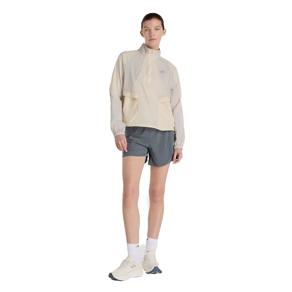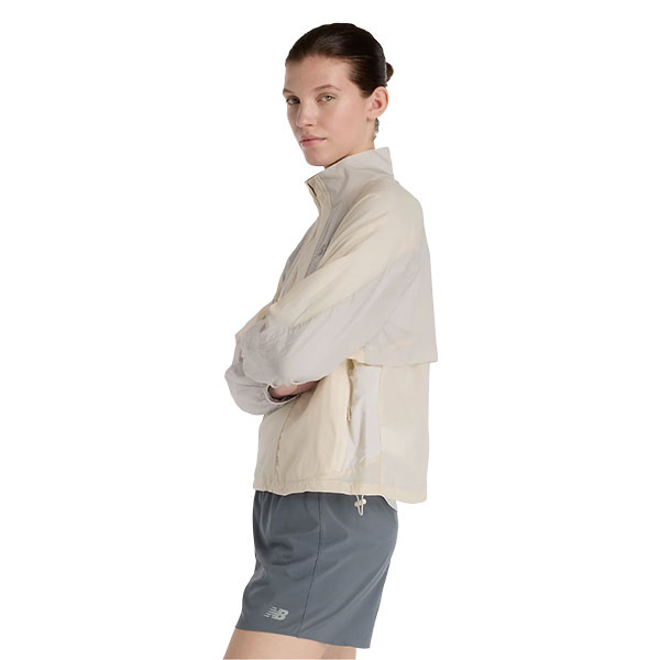 撥水加工を施したNB Water defy 対応の撥水ジャケット。ナイロンリップストップ素材を使用した軽量で乾きやすい一枚モノ。リラックスシルエットながら、裾のドローコードでフィット感を調整でき、ランニング時の風の抵抗を軽減。リフレクト仕様のNBロゴが早朝・夜間の視認性を高め、ジップ付き左右ハンドポケットとドロップインポケットで機能性も抜群。デイリーからアクティブシーンまで幅広く活躍するアイテム。