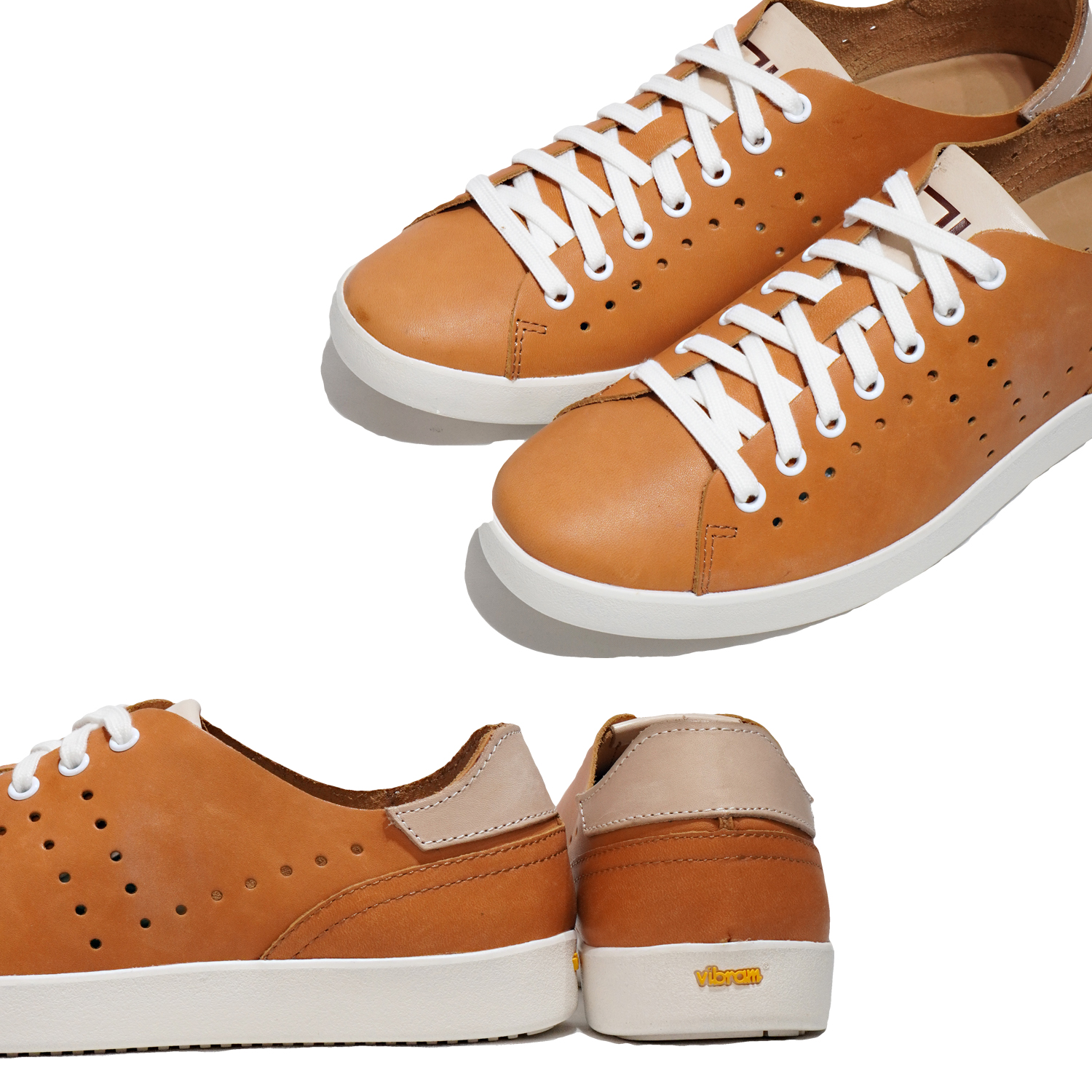 ハイテクな機能や要素はありませんが、ハンドメイド製法と一枚の本革を使用している為、歩行時に自然に空気の循環がありアッパーサイドに大胆に施したブランドロゴのパンチングから空気が抜けて行く、まるで歩く度に呼吸をしているような効果があります。更に牛革を使用したインソールがより蒸れにくい快適な履き心地が期待できる商品です。