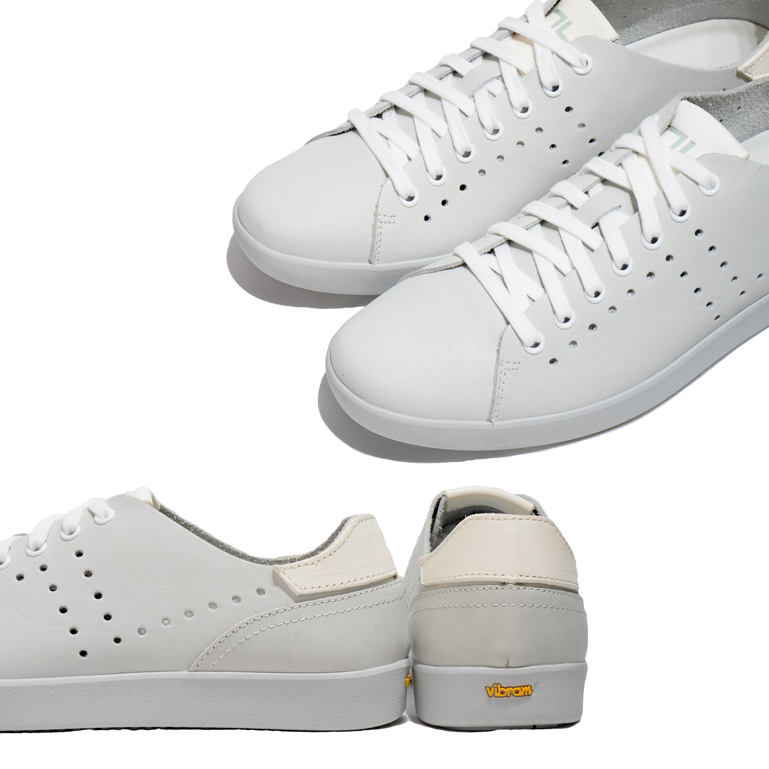 ハイテクな機能や要素はありませんが、ハンドメイド製法と一枚の本革を使用している為、歩行時に自然に空気の循環がありアッパーサイドに大胆に施したブランドロゴのパンチングから空気が抜けて行く、まるで歩く度に呼吸をしているような効果があります。更に牛革を使用したインソールがより蒸れにくい快適な履き心地が期待できる商品です。