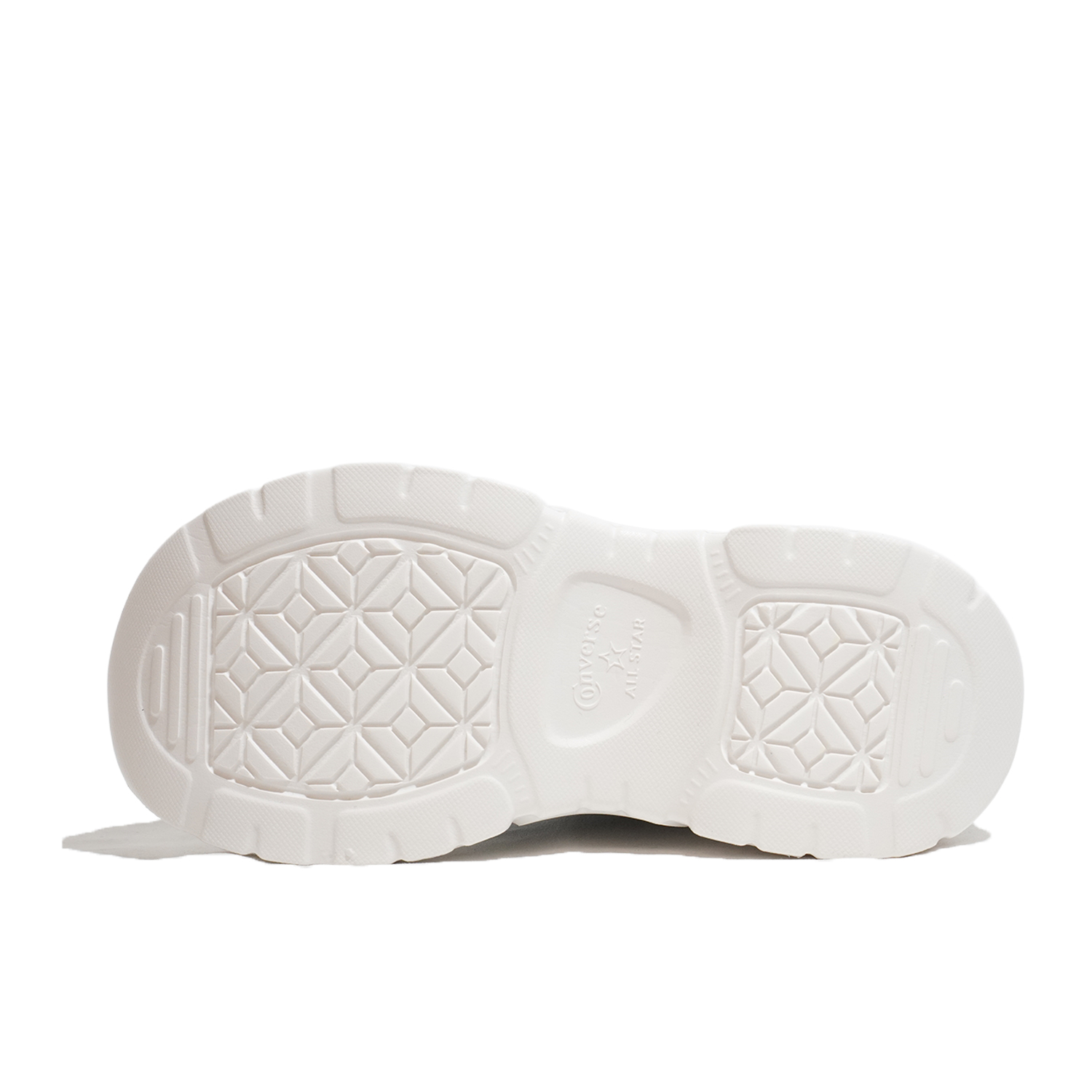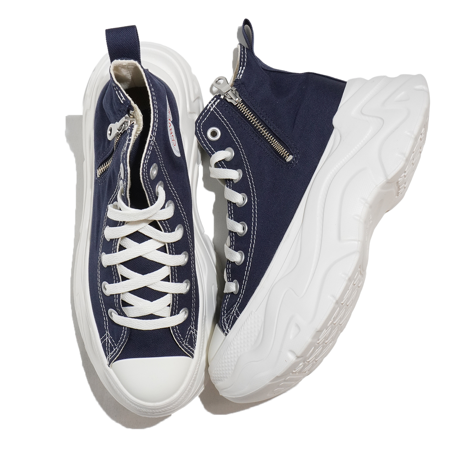 オールスターのソール、パターンアレンジモデル。2000年代のランニングシューズをモチーフにした大きく動きのある厚底ソールを採用。テープ部分までをE.V.A.で一体にしたソール設計により、ボリューム感がありながら軽量化を実現。ジッパーを外腰に配した着脱性の高いモデル。
