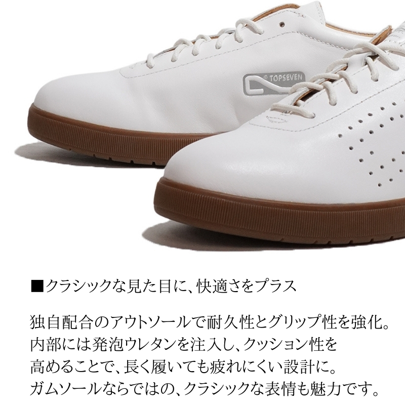 トップセブンのスタート当初を思い起こさせるようなクラシックなレザースニーカーに仕上げたモデルになります。