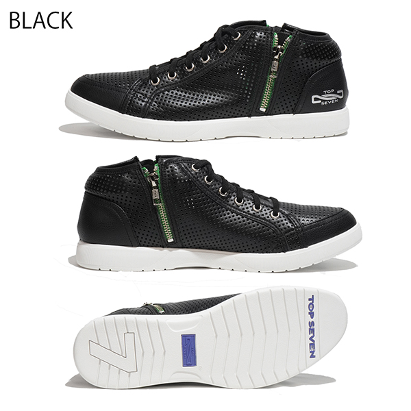 両サイドのジップは脱ぎ履きが楽なだけではなくアクセントとしても利いているモデルです。