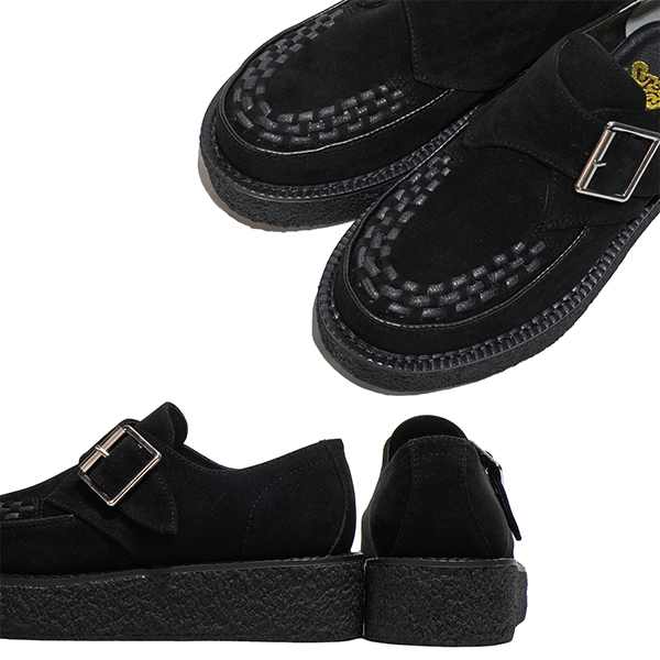 モンクストラップタイプ。定番のモンクストラップを再構築。シューズの構造上サイズの微調整が効きにくい為、返りの良い薄底のソールや、屈曲しやすい木型を使われる事が多いモンクストラップ。