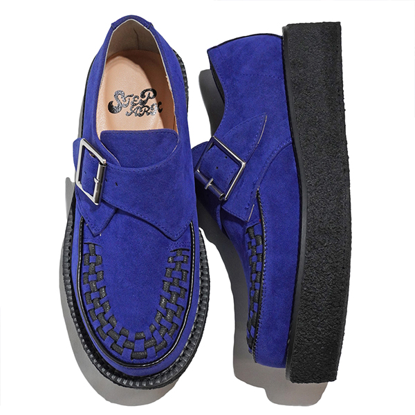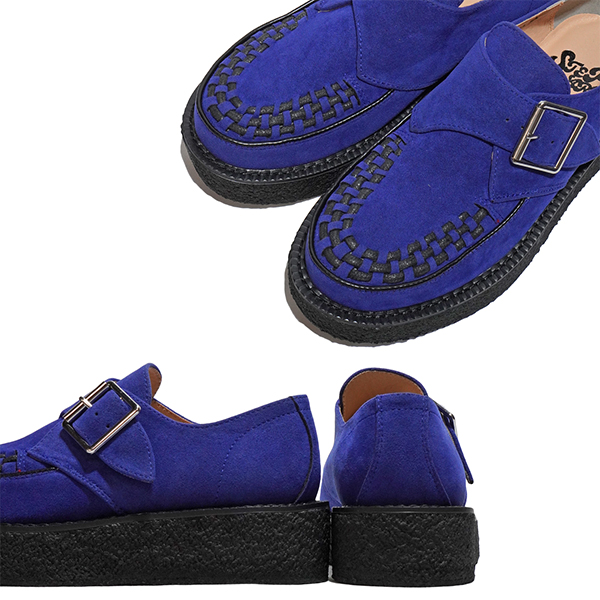 モンクストラップタイプ。定番のモンクストラップを再構築。シューズの構造上サイズの微調整が効きにくい為、返りの良い薄底のソールや、屈曲しやすい木型を使われる事が多いモンクストラップ。