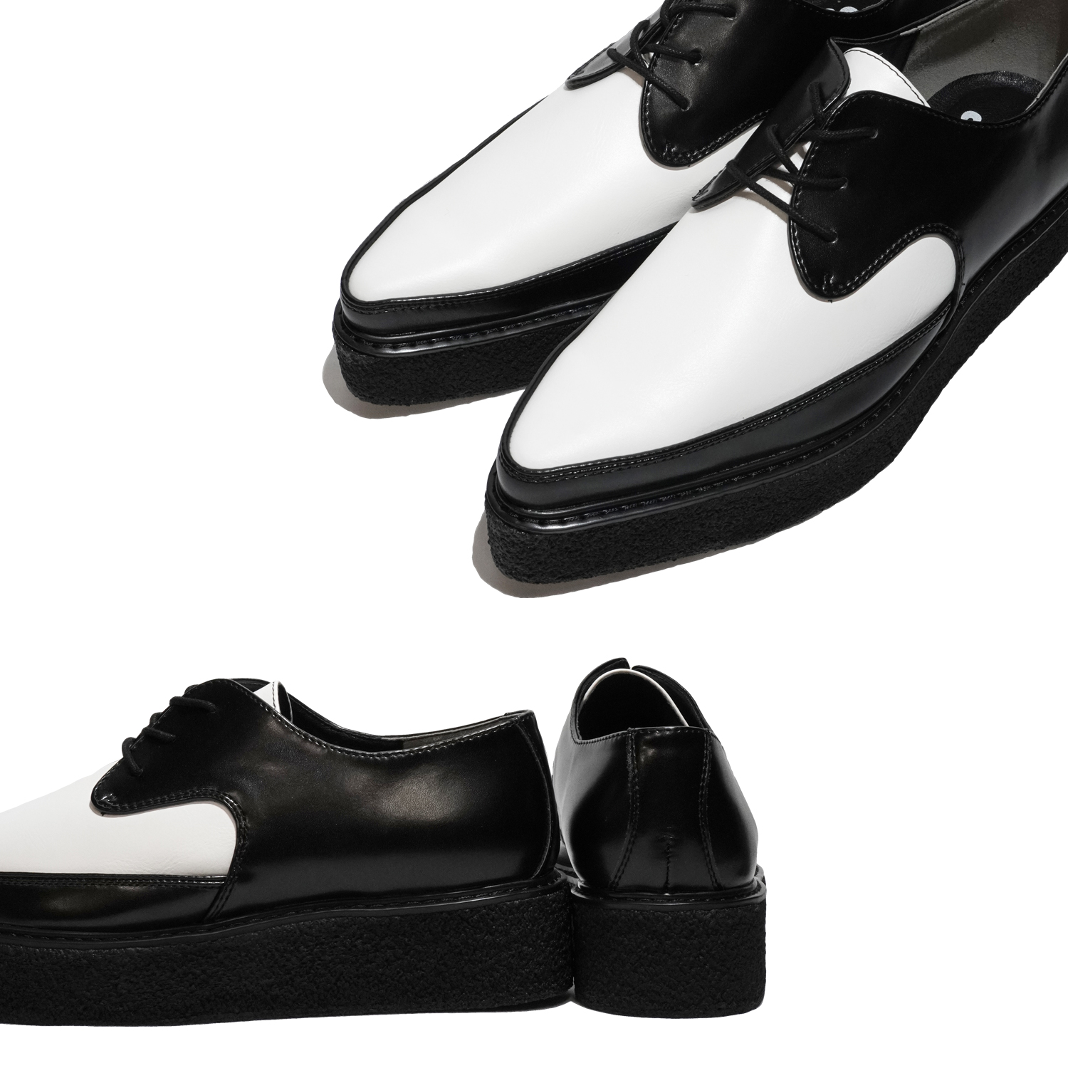 ヴィーガンレザーを使用したラバーソールシューズ。