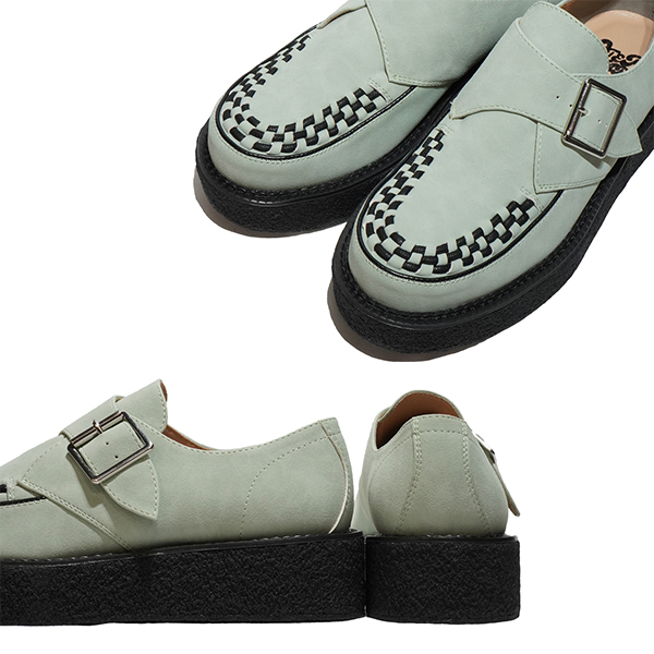 モンクストラップタイプ。定番のモンクストラップを再構築。シューズの構造上サイズの微調整が効きにくい為、返りの良い薄底のソールや、屈曲しやすい木型を使われる事が多いモンクストラップ。