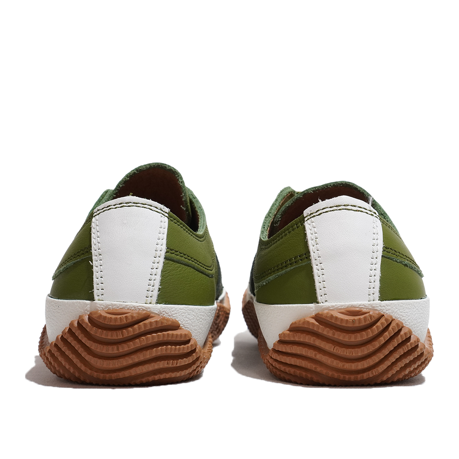 アッパーには、抹茶の自然な深みを活かした抹茶レザーを採用。切替部のダークグリーンのスエード素材や踵部のホワイトのレザーが、