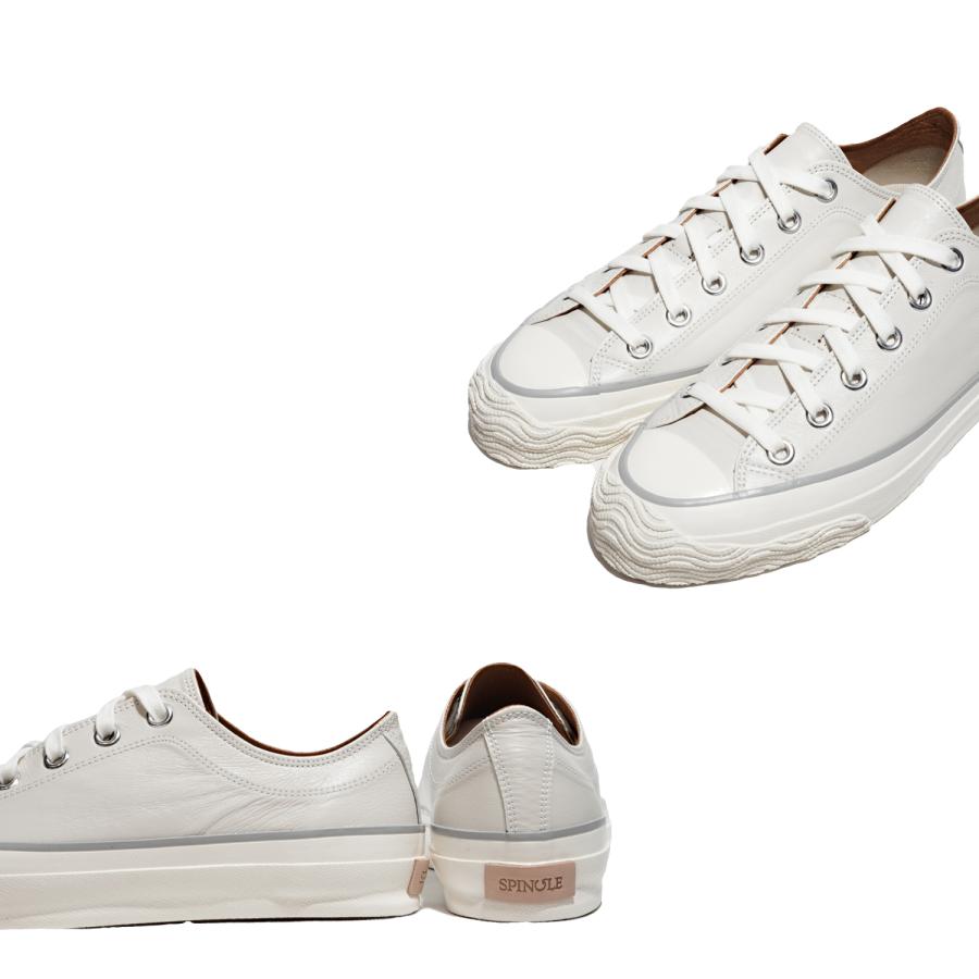 風合いあるカンガルーレザーのアッパー、巻き上げソールをイメージしたトゥーガード、SP-110のステッチワークなど、スピングルの代名詞を詰め込んだローカット。