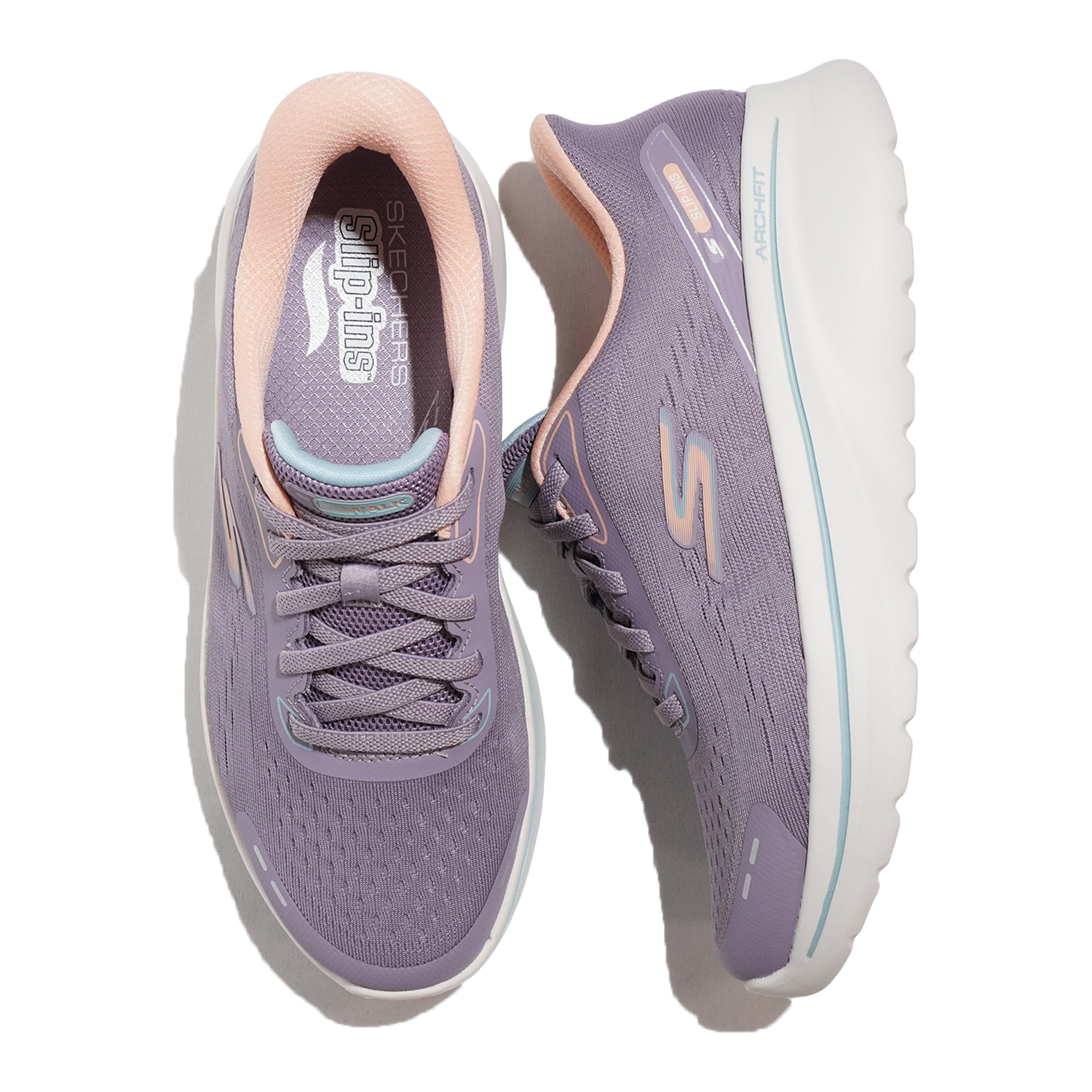 毎日のウォーキングを快適にサポートする、Skechers Hands Free Slip-insR(スケッチャーズ ハンズフリー スリップインズ) Relaxed FitR(リラックスドフィット):GO WALK Arch Fit(ゴーウォーク アーチフィット) Nジョイ。Heel Pillow(ヒールピロー)デザインを採用し、APMA認証を得たヴィーガン(動物由来成分を含まない)素材のスリップオンウォーキングシューズ。ゆったりとしたエンジニアードメッシュのアッパー、固定式ストレッチレース、取り外し可能なSkechers Arch FitR(スケッチャーズ アーチフィット)インソールが特長です。