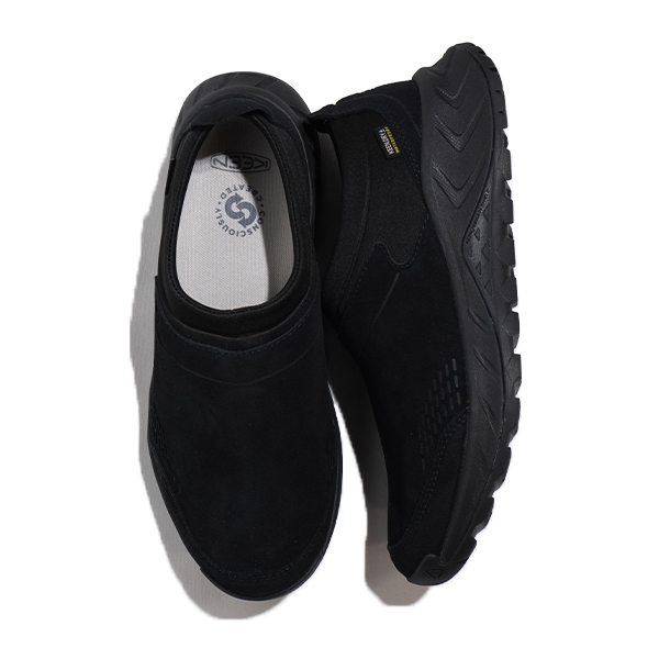 都会的なスタイルとフィールドでの機能を追求したプレミアムプロダクト、脱ぎ履きの容易なスリップオンデザイン。撥水処理を施したスエードアッパーにKEEN独自の防水機能を搭載、都市部から野外まで、快適な歩行を実現するソールユニットを採用。