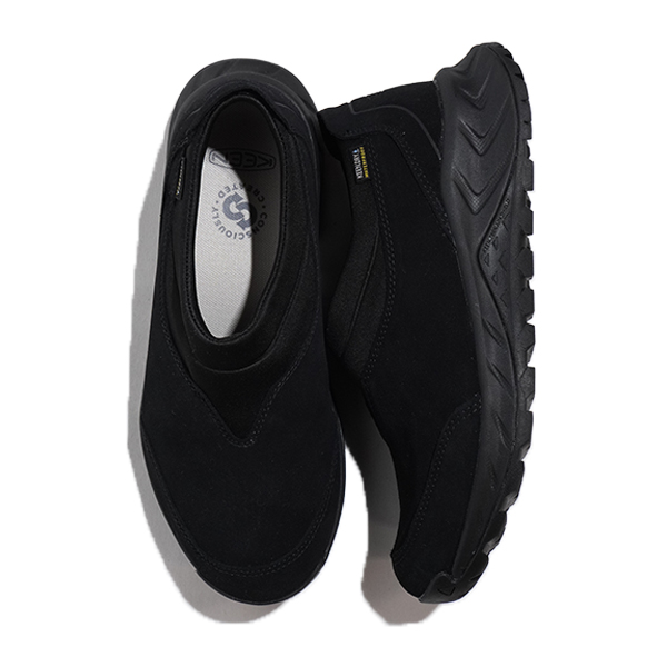 都会的なスタイルとフィールドでの機能を追求したプレミアムプロダクト、脱ぎ履きの容易なスリップオンデザイン。撥水処理を施したスエードアッパーにKEEN独自の防水機能を搭載、都市部から野外まで、快適な歩行を実現するソールユニットを採用。
