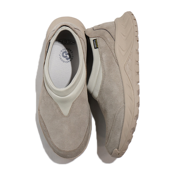 都会的なスタイルとフィールドでの機能を追求したプレミアムプロダクト、脱ぎ履きの容易なスリップオンデザイン。撥水処理を施したスエードアッパーにKEEN独自の防水機能を搭載、都市部から野外まで、快適な歩行を実現するソールユニットを採用。
