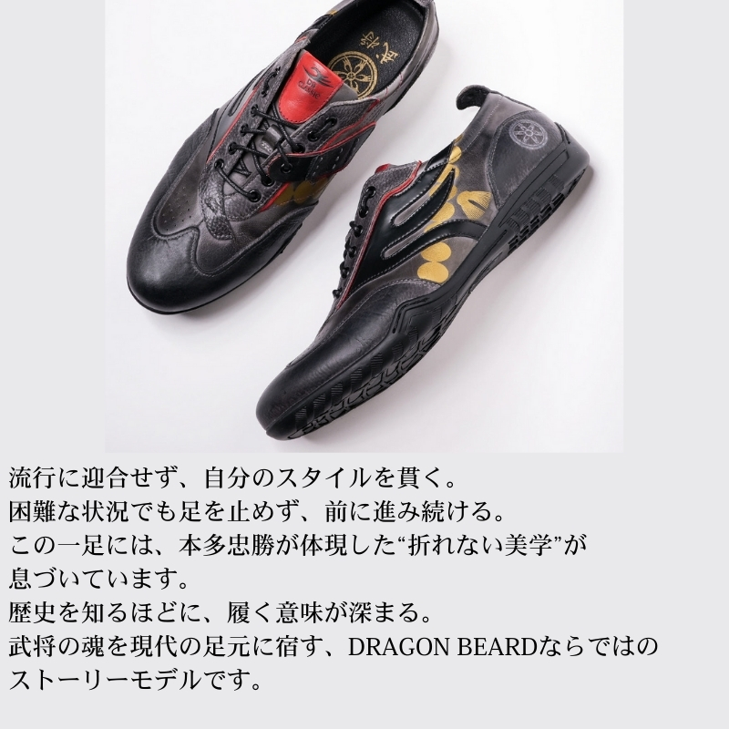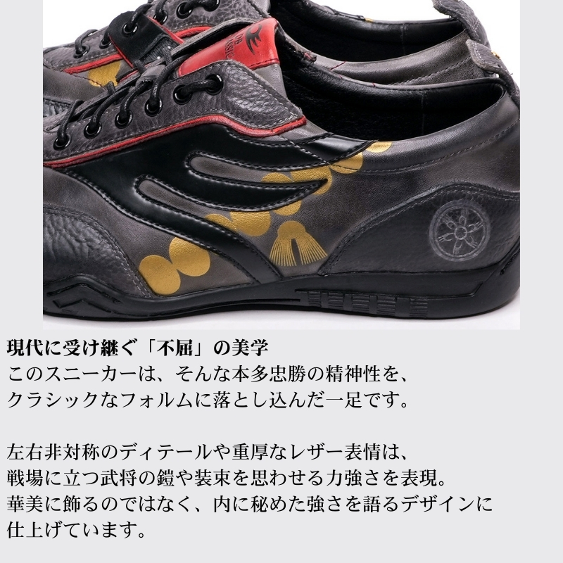 武将の風格を現代のファッショに昇華したこの一足は、足元に武士の気高さを感じさせながら風合い豊かな表情が楽しめます。