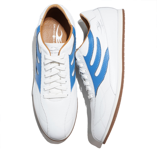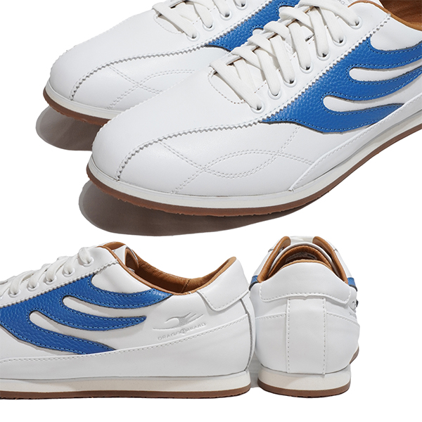 アイレットステイからつま先に伸びる、その両サイドには長めのラストをより綺麗に見せられる飾りステッチを設置しカジュアルでありながらスポーティー感を出している。