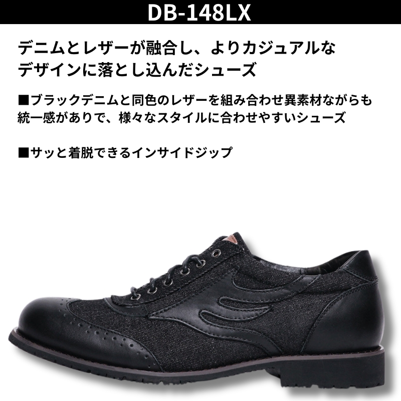 デニムとレザーが融合し、よりカジュアルなデザインに落とし込んだシューズ