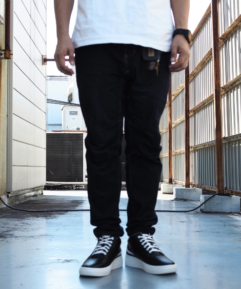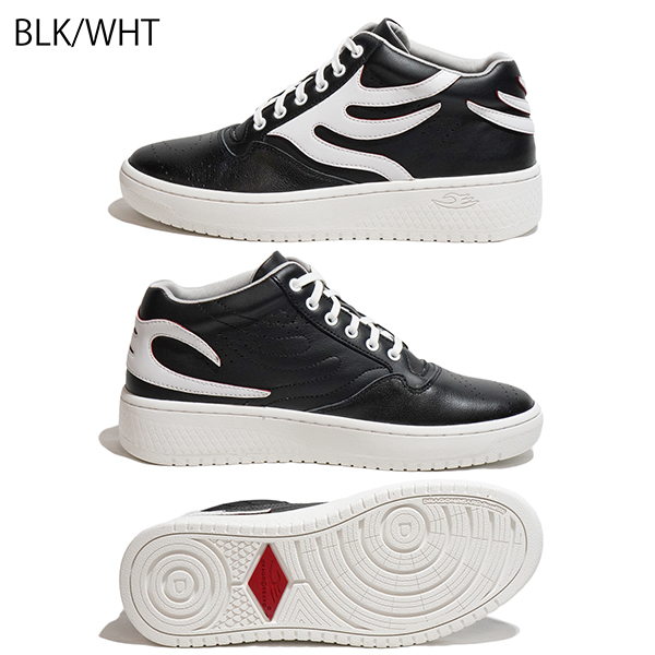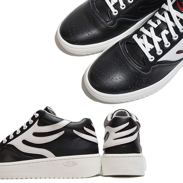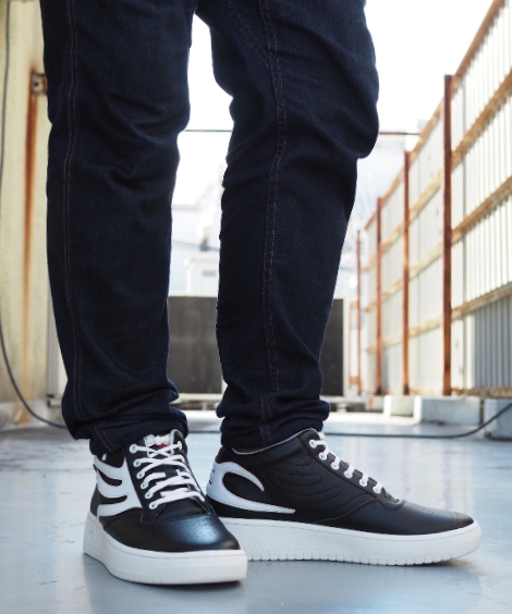 つま先にはパンチングにてさりげなくブランドロゴを追加設置したミドルカットレザースニーカー。