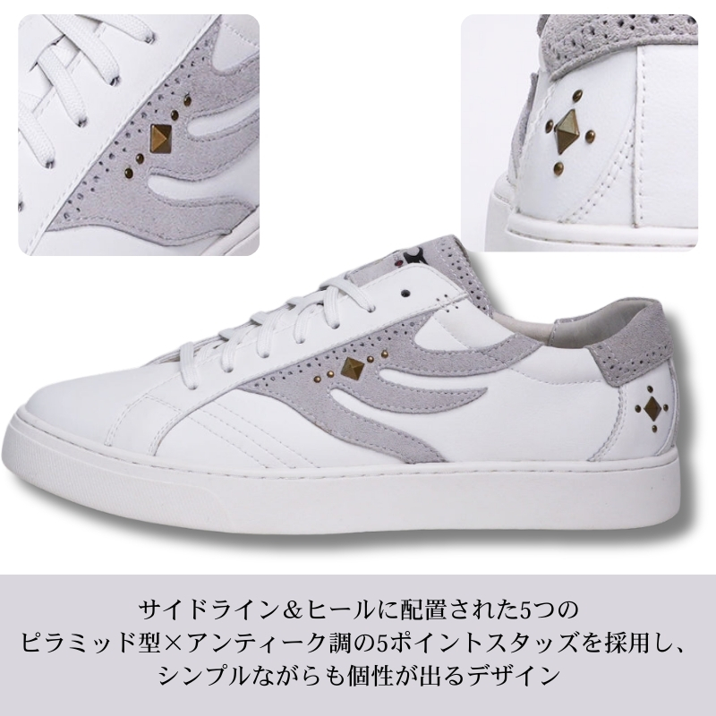 そしてサイドライン&ヒールに配置された5つの『ピラミッド型×アンティーク調』の5ポイントスタッズ。