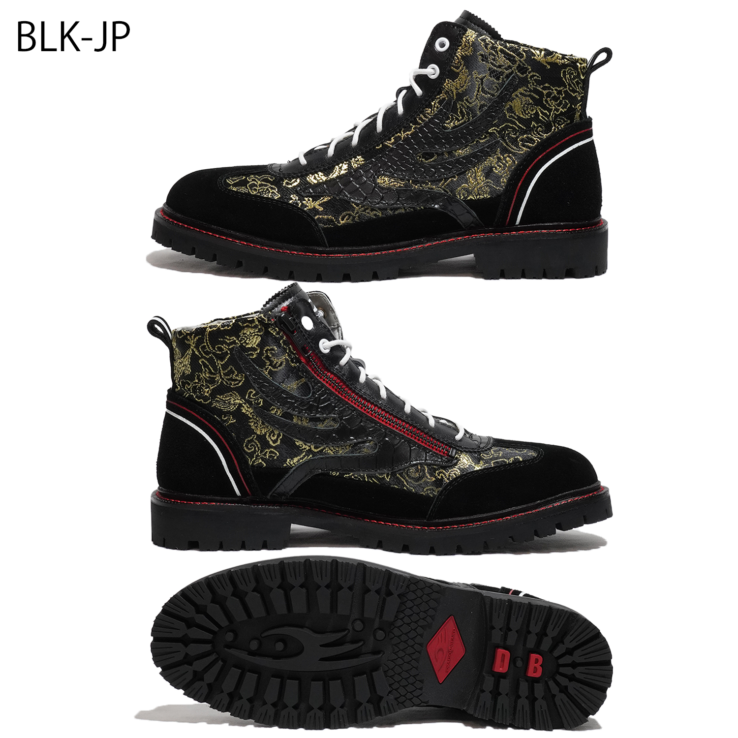 アッパー : スムースレザー+スエードレザー+和柄