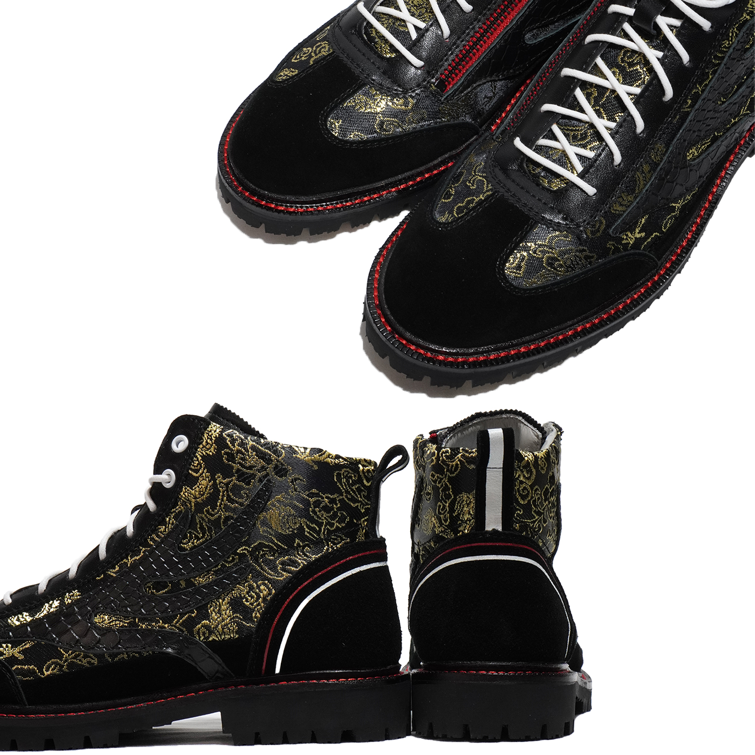 アッパーの素材はスムースレザーとスエードレザーに【和柄】を使用し、