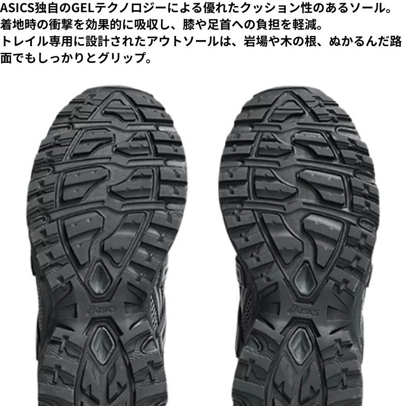 ソールはGEL-SONOMAシリーズ2代目までの構造を使用しており、日常使いなどのさまざまな環境で高度なクッション性とグリップ性を生み出します。