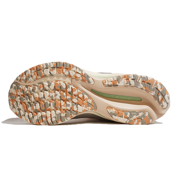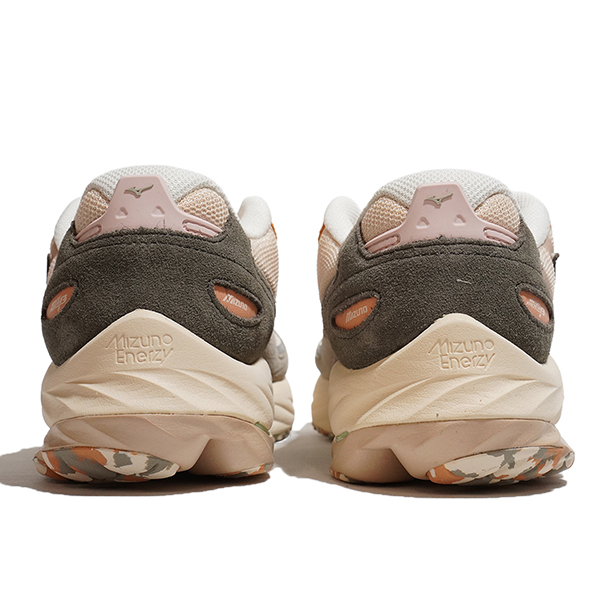 “クッション・安定・反発・走り心地”とランニングに必要な機能的価値を高めるために開発されたミズノウエーブとミズノエナジーを組み合わせたパフォーマンスソールと、プレミアムな天然スエードを大胆に施したモダンなアッパーデザインが特徴。