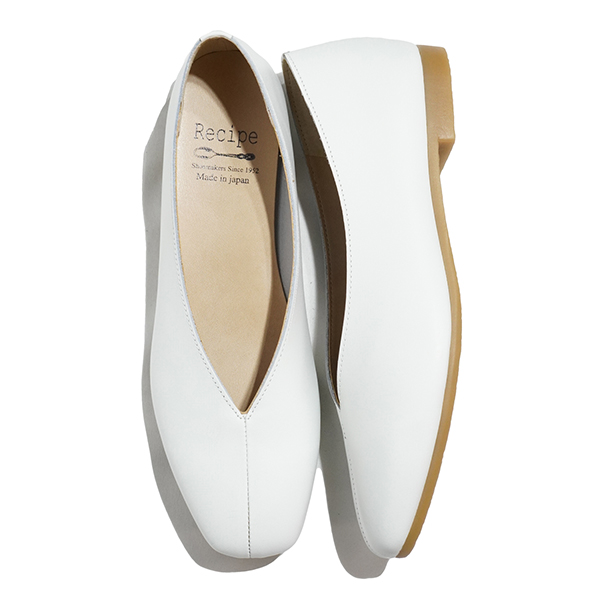 カットのトップラインが脚を美しく見せ、ヒール無しでも上品な印象に