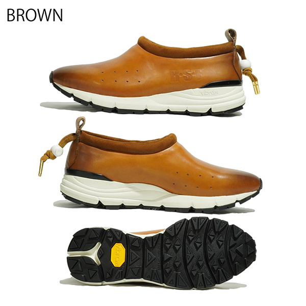 革の質感を活かす為にあえてシンプルなシューズに仕上げたモックデザイン。BLACKはシボ感のあるレザー、BROWNは焦がし加工を施したレザーにする事で革本来の質感や温かみのある雰囲気。「履いてラク、毎日履きたくなる靴。」をテーマにしているので足入れもゆったりとしており、革の足なじみも体感できるシューズです。アウトソールは履き心地を追求するために、Vibramソールを使用。クッション性、グリップ力、耐摩耗性も向上しており、ちょっとした山道や雨の日にも滑りづらい設計があなたの日常を快適にサポートしてくれる仕上がりになっております。
