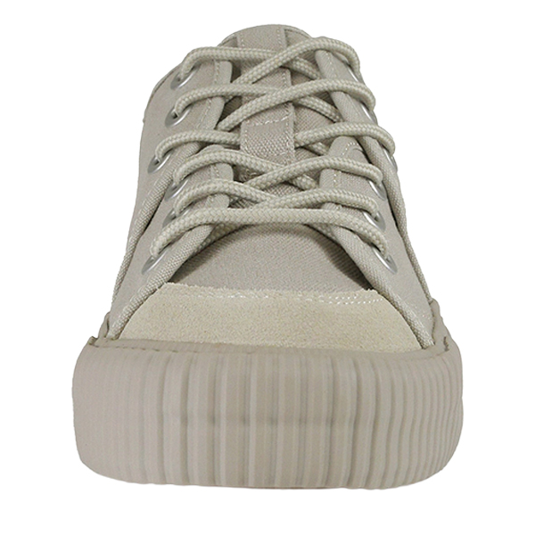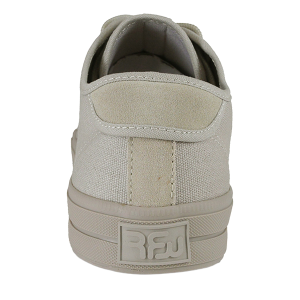 シンプルでありながら、個性的なデザインが特徴のキャンバススニーカー『SANDWICH』。初期に製作したキャンバス&スエードのモデルをアップデートして復活しました。HRG1はアッパー、ヒモ、サイドのゴムテープが全て同色で、ナチュラルで落ち着いた印象になります。SANDWICHとはアッパーのパターンが分かれて構成されており、足全体を包み込む様にホールドしてくれるのが特徴のRFWを代表するモデル。包み込むイメージからサンドイッチという名前が付けられております。アッパー両サイドの羽根が2枚のパーツに分かれている事で、履き口も開きやすく、着脱もスムーズです。インソールを貼り付けのものからPUインジェクションのカップインソールに改良。カップインソールが足全体をサポートし、長時間の歩行でも快適な履き心地を実現しました。どんなコーディネートにもピッタリとマッチし、スタイリッシュな印象を与えます。